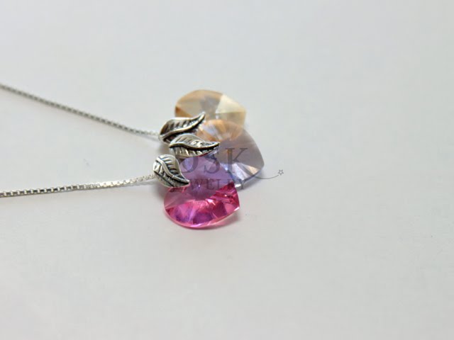 Purple Fuchsia Necklace16" Sterling Heart Link Necklace
